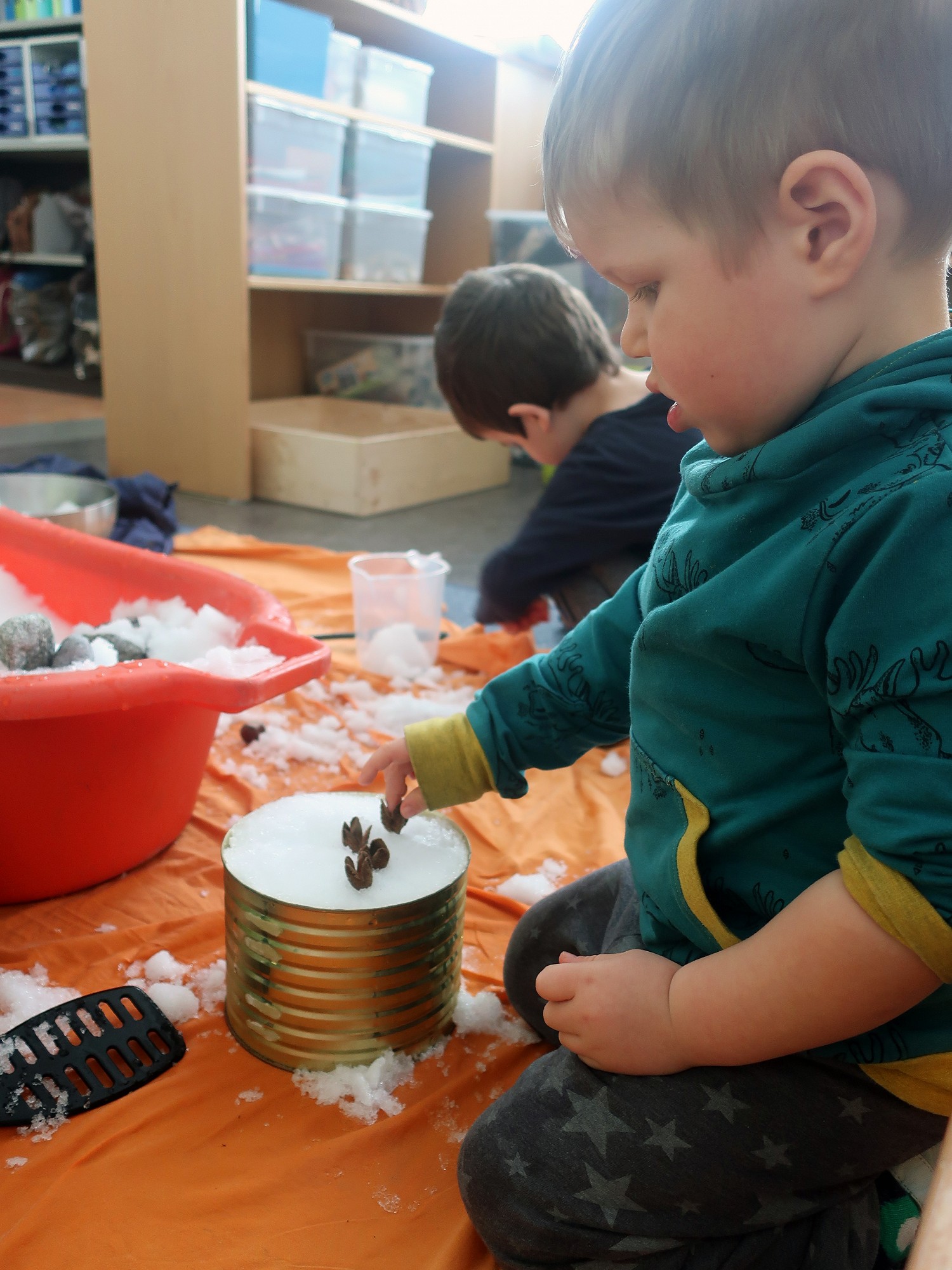 Unser Alltag ist themenorientiert gestaltet, lässt aber auch viel Freiraum den aktuellen Bedürfnissen der Kinder nachzugehen und bietet Platz für Freispiel.